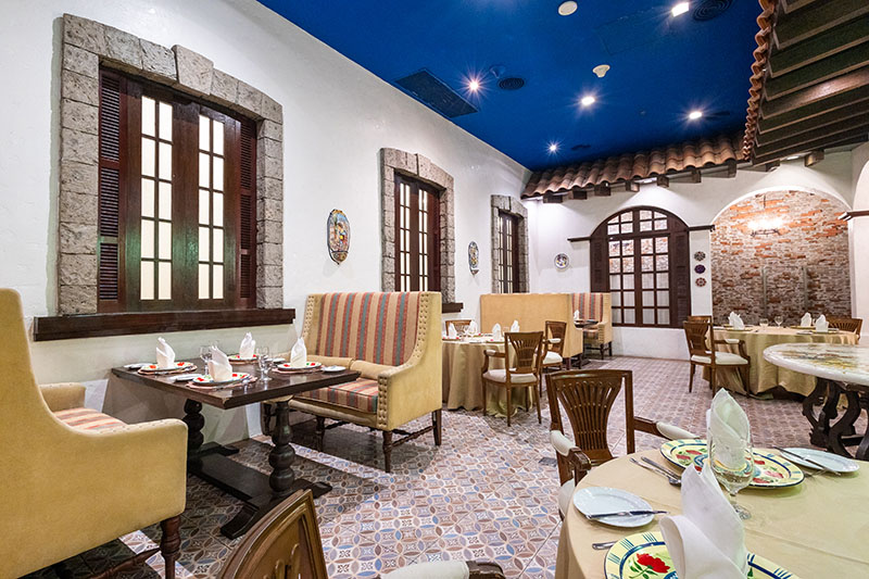 Designed with flourishes of traditional Spanish culture flair, from the Moorish floor tiles to the wrought-iron accents, Costa del Sol’s menu highlights include Cochinillo, Paella, and an extensive selection of authentic tapas.