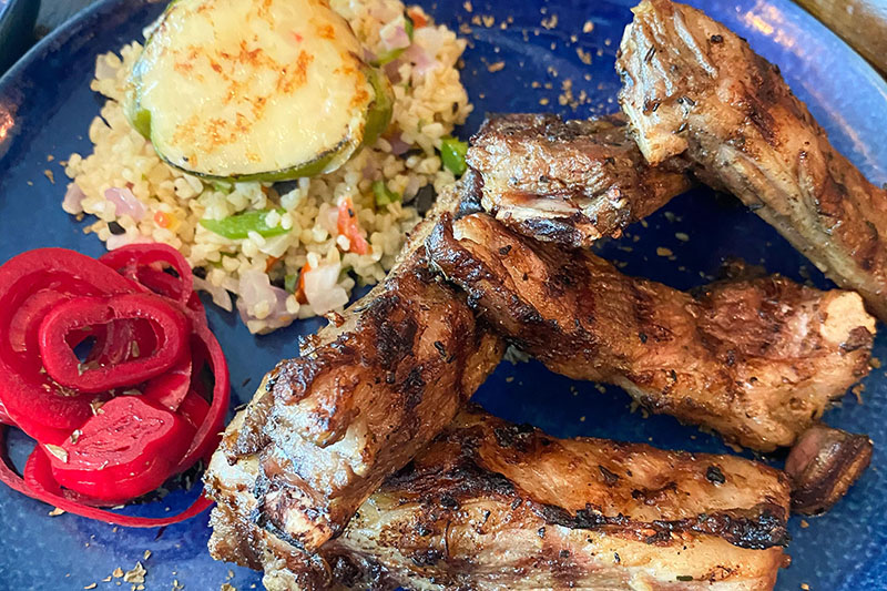 Grilled lamb ribs₱1,050 Served with red onion salad, bulgur salad, and stuffed bell pepper Grilled lamb ribs quantity Add to cart Category: Main Courses Brand: Mykonos Related products Adobong pusit sa gata ₱720 Add to cart Kare-kare ₱950 Add to cart Keng deng nua (Beef curry) ₱960 Add to cart Pinalutong na tadyang ng baka ₱1,250 Add to cart