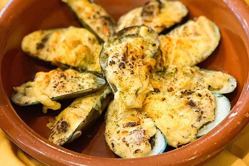 Mejillones al horno₱580 Baked mussels with cheese and garlic Mejillones al horno quantity Add to cart Category: Tapas Tags: recommended, dairy Brand: Costa Del Sol Related products Sinigang na hipon ₱810 Add to cart Crispy dulong ₱375 Add to cart Bistek Tagalog ₱590 Add to cart Gazpacho ₱330 Add to cart