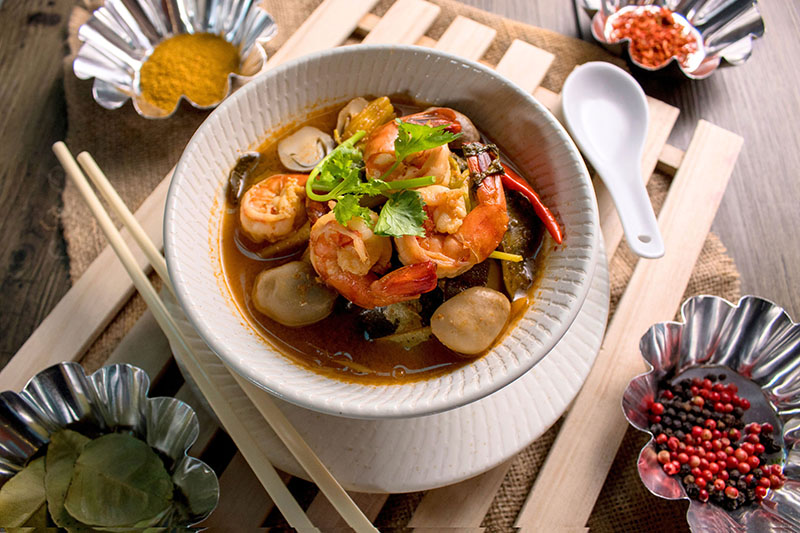 Balesin vannamei shrimp soup with herbs, lemon grass, and galangal